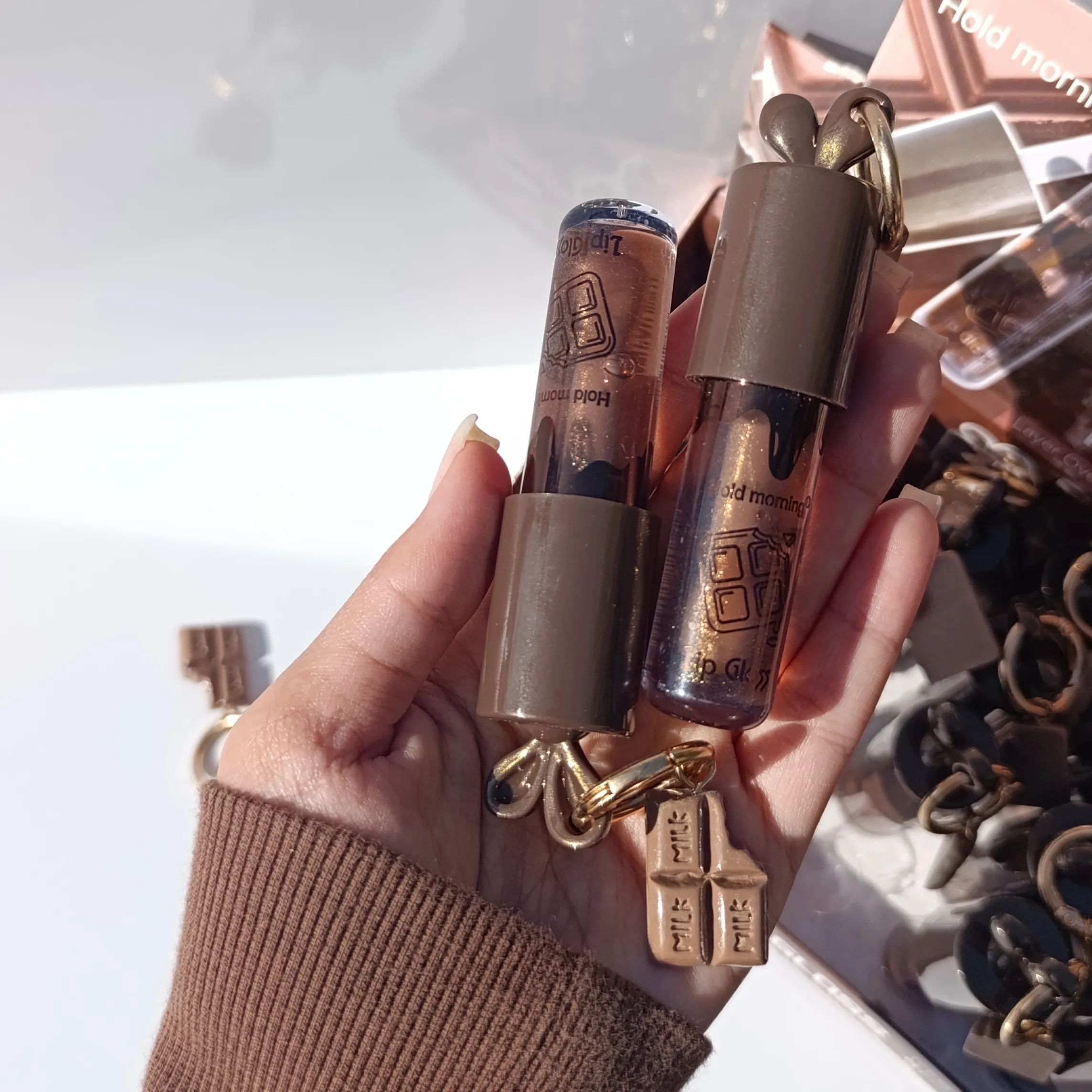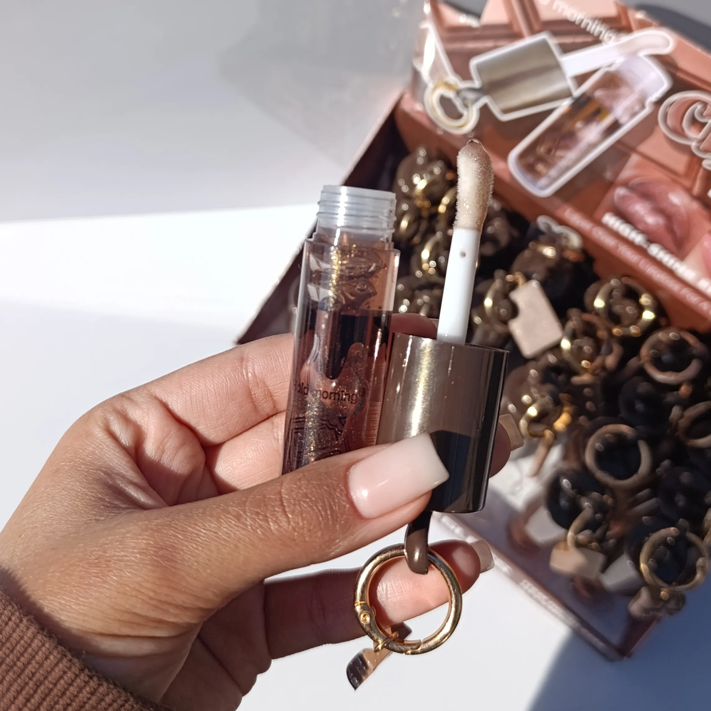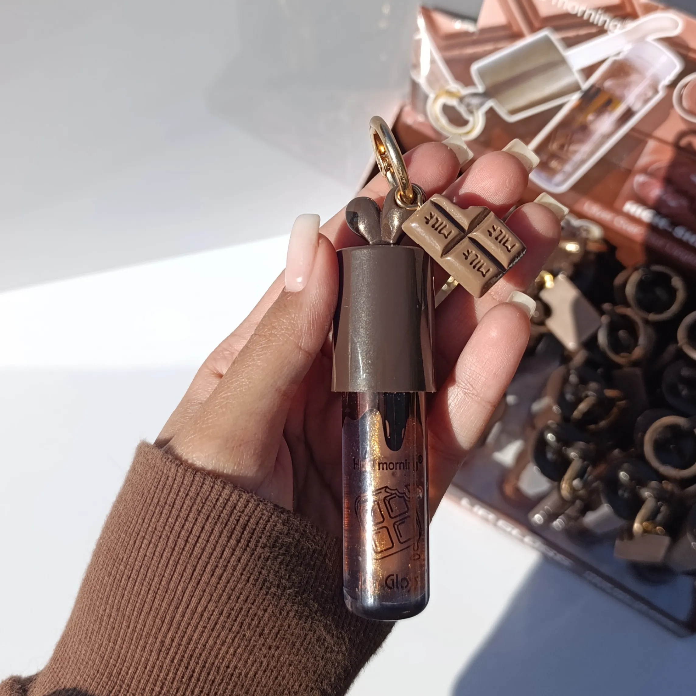 لیپ گلاس آویزدار شکلاتی